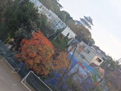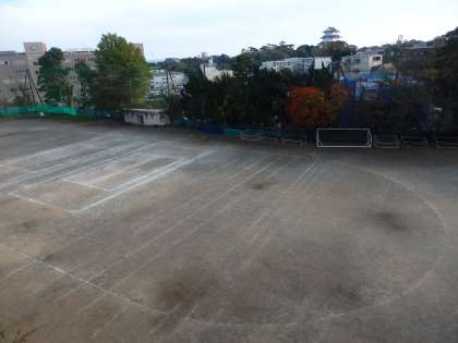 グラウンドの南側にあるハゼノキの葉が赤くなってきました。南校舎の4Fからは、ハゼノキの紅葉の向こうに小田原城が見える素晴らしい眺めとなっています。
