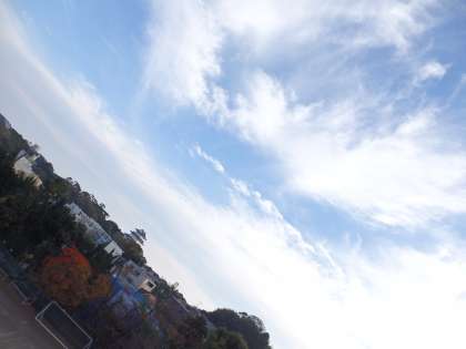 ハゼノキの紅葉、小田原城の白壁、秋の青空と白い雲がきれいに見えました。