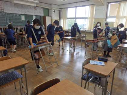 南館4Fの1年生の教室では、数人の生徒たちが熱心に清掃に取り組んでいました。