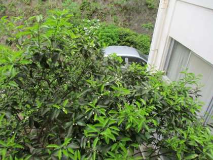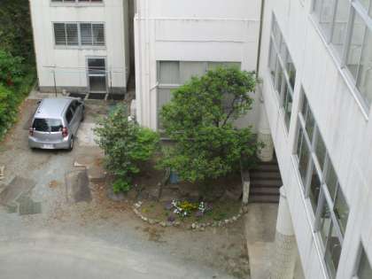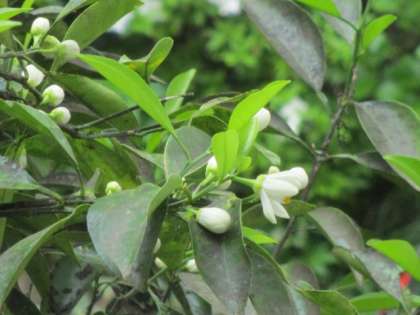 北校舎校務員室前の夏みかんの白い花が開き始めています。昨年はすす病にかかり実をつけませんでした。今年は数は少ないですが、白いつぼみをつけてくれました。