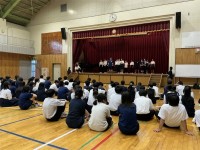 1校時、柔剣道場では5組の太鼓の練習が始まっていました。とっとこさんによる熱心なご指導が生徒のやる気を引き出します。毎年、学習発表会のステージでは堂々とした演奏がされています。4階ではALTによる英語の授業が楽しく展開されていました。学校はいろいろな所で人が輝ける場となっています。