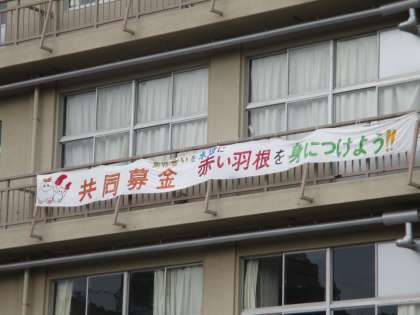 南校舎の3Fベランダに赤い羽根共同募金の協力を促す横断幕が掲示されています。