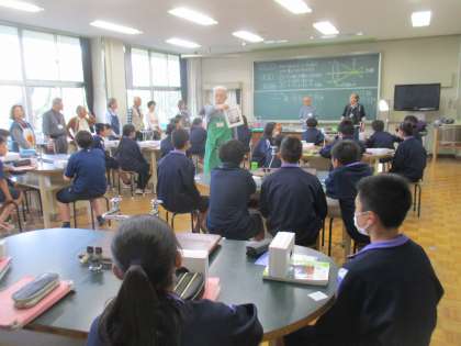午前と午後に1クラスずつ、1年生はなるほど体験出前教室を行いました。