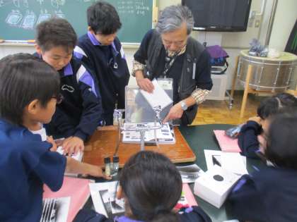 理科室へ戻り、模型を使ってカメラの構造や写真の写り方などの学習をしています。