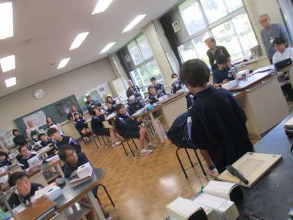授業が終わり、親切に教えていただいた講師のみなさんに代表生徒がお礼を述べています。