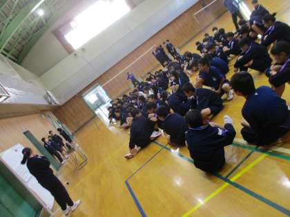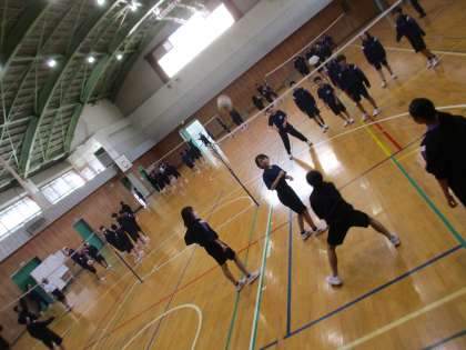 昼休みに体育館アリーナで、1年生のバレーボール大会が行われました。