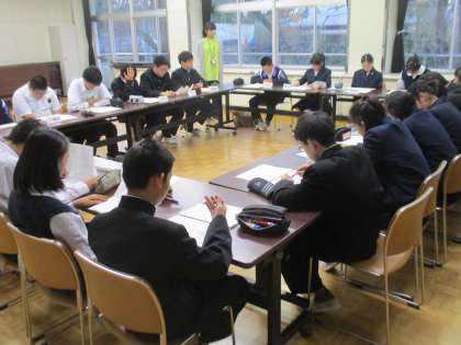 生徒会総務部が中心となって、各委員会の取り組みを話し合っています。