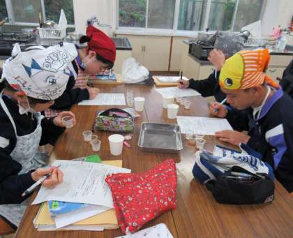 1・2校時、北館1F調理室で、2年生が調理実習を行ないました。
