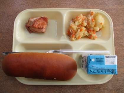 給食の片付けをしている1年生の男子生徒に感想を聞くと、美味しかったです、特に鶏肉はレモンが効いててサイコーでしたと言っていました。