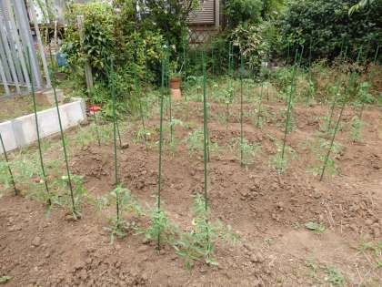 トマトを支柱で支えました!
