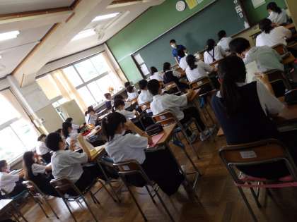 南館4Fの1年生の教室では、久しぶりに全員がそろい緊張している生徒も見られました。