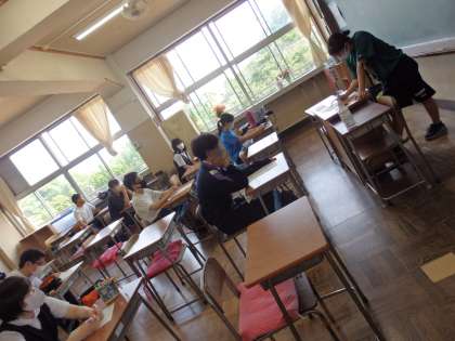 放課後、南館3Fの2年生の教室で、今年度初めての部長会が行われました。ウイルス感染症予防と1年生に向けた部活動説明会等について話し合われました。