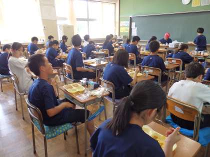 今日から給食が再開しました。メニューがカレーとヨーグルトだったので、多くの生徒がおかわりを希望していました。