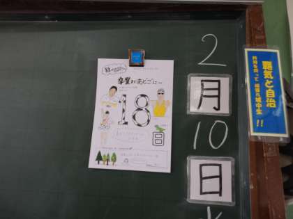 昼休み、南館2Fの3年生の教室に日めくりカレンダーが掲示されていました。今日は神奈川私立高校の入試で、クラスの7〜8名の生徒が休んでいるとのことです。