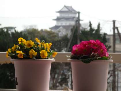 南校舎3Fの2年生の教室に、可愛らしい鉢花が置いてあります。