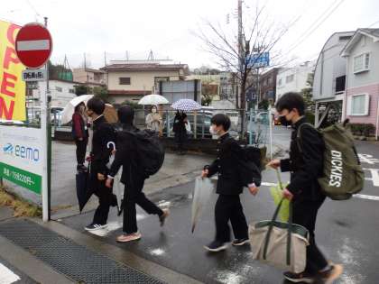 15:00〜15:20の20分間、雨の中でしたが、保護者の皆さまに登下校指導をしていただきました。これで、計画していた年4回の登下校指導を予定どおりに実施することができました。保護者の皆さまにはお忙しい中、ご協力をいただきありがとうございました。