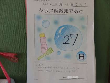 北館3Fの2年生の教室にある日めくりカレンダーが残り27日になっていました。