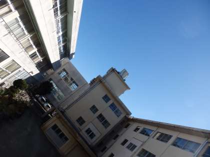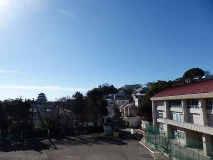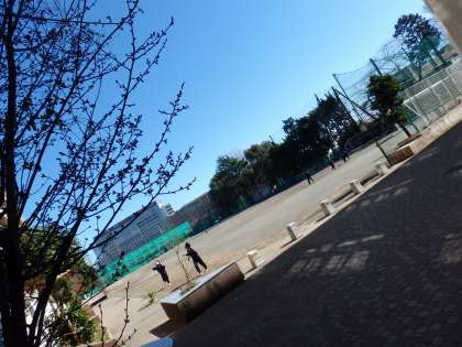 昨日の雨が上がり、今日は冬らしい青い空になりました。昼休みのグラウンドは、3年生がいないので、数人の1・2年生の生徒だけが活動していました。
