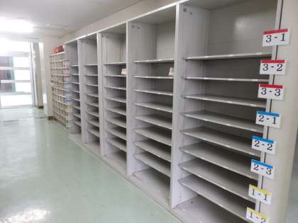 南館2階と体育館をつなぐ通路にある下駄箱のシューズを置く位置を変更しました。集会等でスムーズに出入りできるように工夫されています。