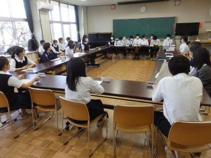 放課後、北館3Fの多目的ホールで、前期最後の評議委員会を行ないました。現生徒会長より新生徒会役員が紹介され、全員の拍手で承認されました。
