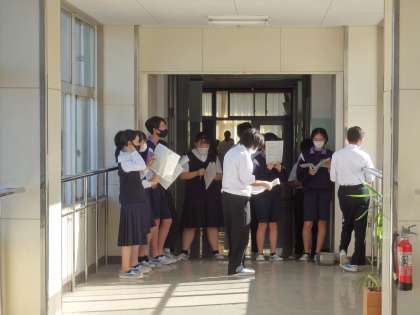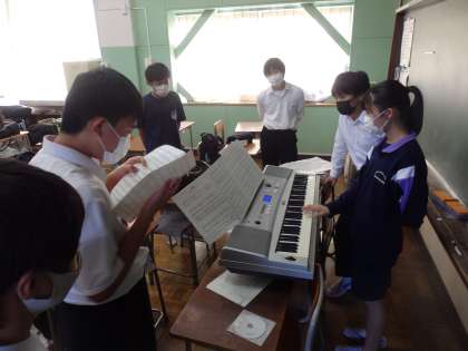 中学校で初めてとなる合唱練習に、2年生がそれぞれの会場に分かれて取り組んでいます。変声期を迎えている男子生徒が多くいる2年生の合唱は、男性パートの仕上がりが重要になってきます。あるクラスの学年委員の女子生徒は、クラス目標をってみんなが1つになって練習に取り組んでいます、声が小さいので今から改善していくことが課題です、と言っていました。