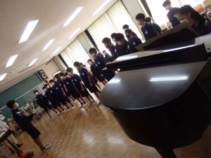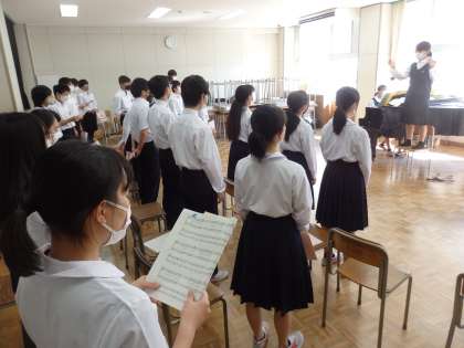 昼休みに校舎のいろいろな場所で、合唱の練習を行なっています。合唱発表会は来週20日に三の丸ホールで開催されます。