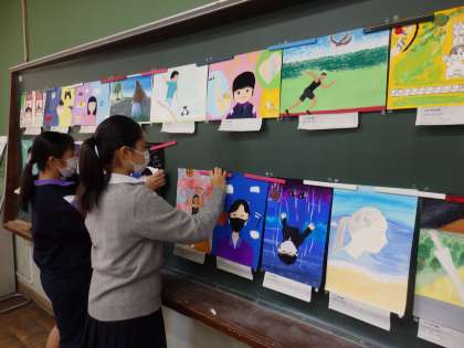 教科の授業で制作した作品を中心に、授業で使用していない教室や廊下等に展示しています。10月21日(木)〜27日(水)の学校公開期間にもこれらの作品を展示していますので、保護者の皆さまも是非ご覧ください。
