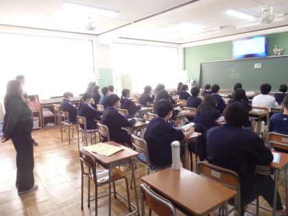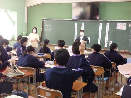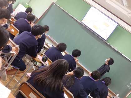 5校時、南館2Fの教室では、3年生の授業が行なわれていました。1組は英語、2組は国語、3組は社会で、来週行なわれる定期テストに向けて生徒たちは集中して授業に取り組んでいます。