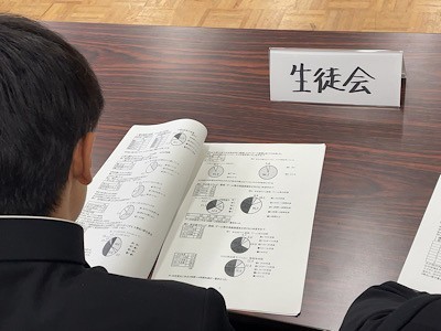 放課後、北校舎3Fの多目的ホールで、学校保健委員会が行われました。学校医や保健担当の先生、生徒会総務部や学級代表、保健委員の生徒らが参加しています。