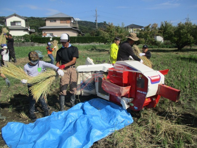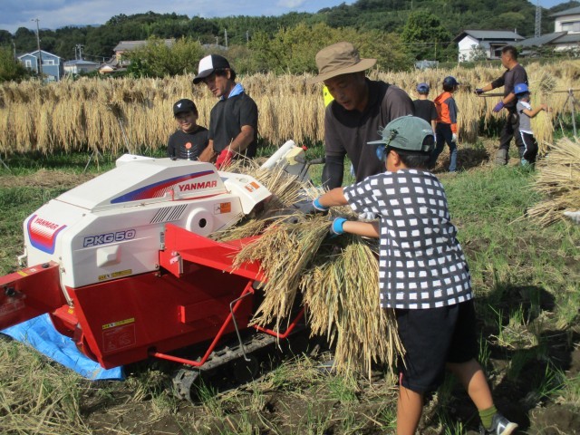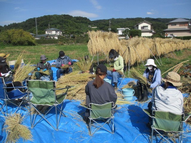 昨夜の雨が心配でしたが、午前中に日差しが出て稲を乾かしてくれたので、予定通り、午後から「脱穀」を行うことができました。