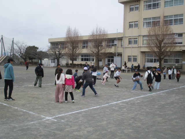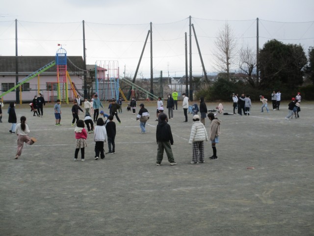 朝から雪の粒がちらつく寒さの厳しい天候でしたが、ドロケイやドッジボールで、まるで兄弟姉妹のように仲よく遊ぶ子どもたちの様子を見ていて、心がほっと温かくなりました。