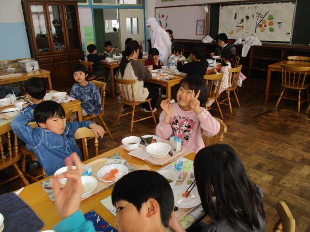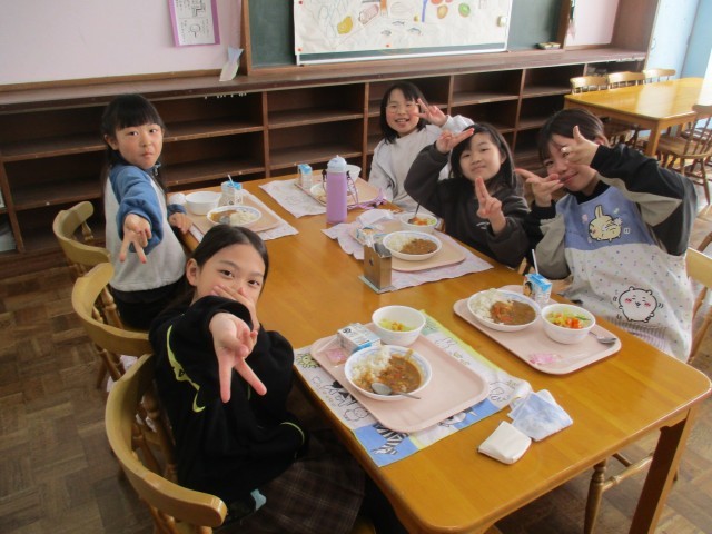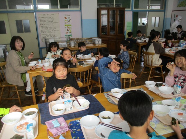 ふだん食べている自分の教室ではなく「ランチルームで食べる」というだけで、気分が高揚してくる子どもたち。 しかも、他学年の子や、級外の先生も一緒に食べるということで、この日を楽しみにしていた児童も多かったようです。