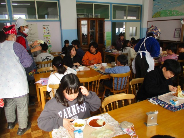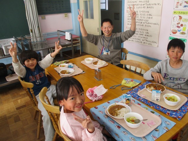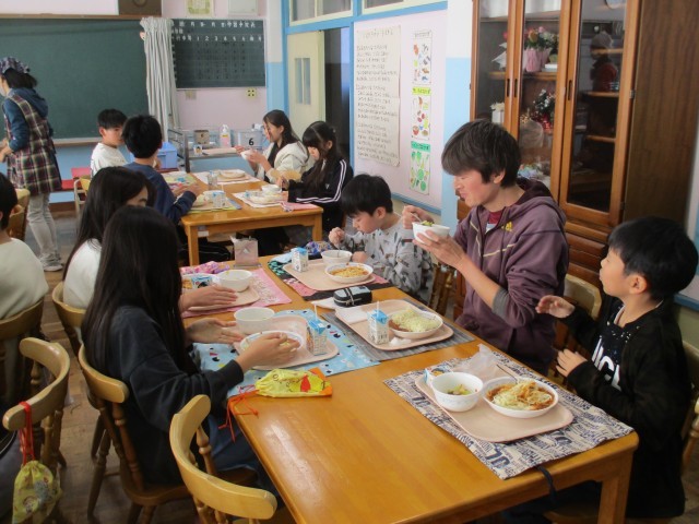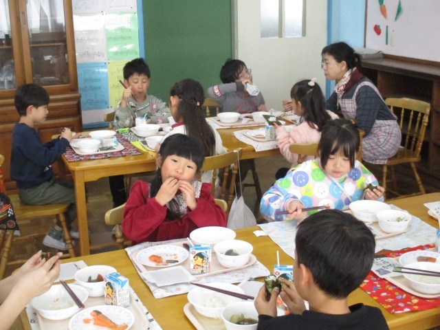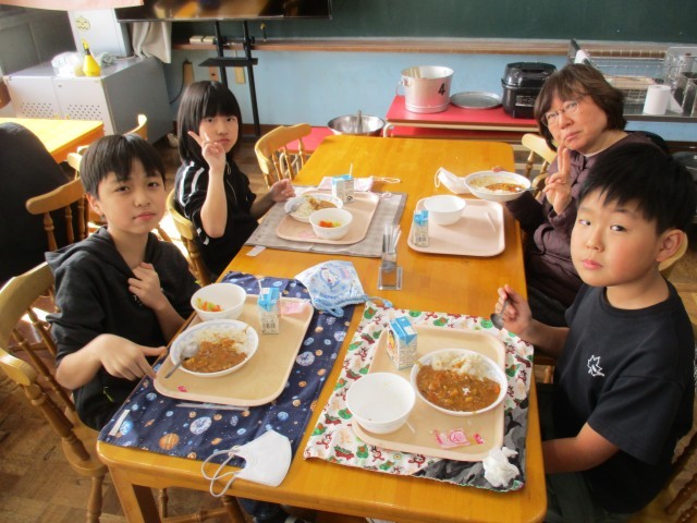 21日(水)は1,2年生が、22日(木)は3,4年生が、23日(金)は5,6年生が、ランチルームで給食を食べました。