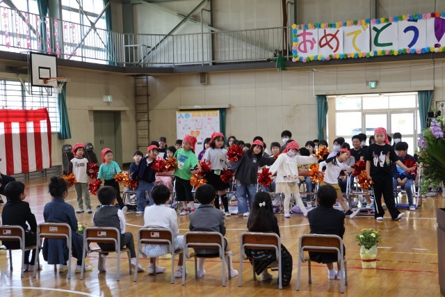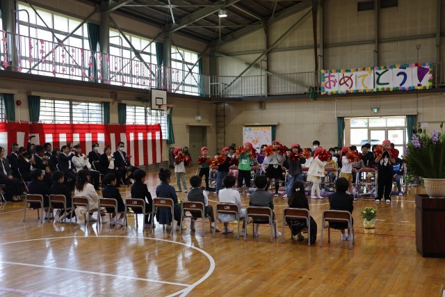 新2年生が、お迎えの言葉として、呼びかけやダンスを披露しました。