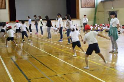1年生と2年生はスクールボランティアの皆さんに協力をしていただき、充分に種目のやり方を理解した上で実施しました。