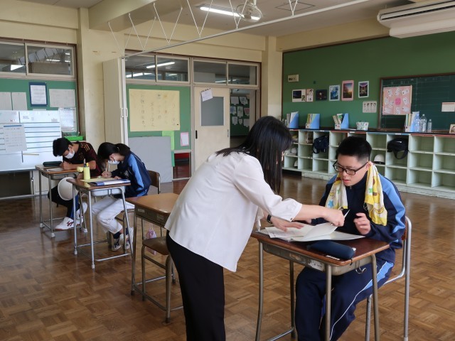前期の終業式を迎えました。今日は1年間200日登校のうち99日目(台風による休校がなければ100日目)だと教頭先生がお話しされていました。式後、各教室に戻り、担任の先生から通知票を手渡されました。前期の振り返りや後期の目標を確認するクラスもありました。多くの成長が見られた半年間。みんな本当によく頑張りましたね。