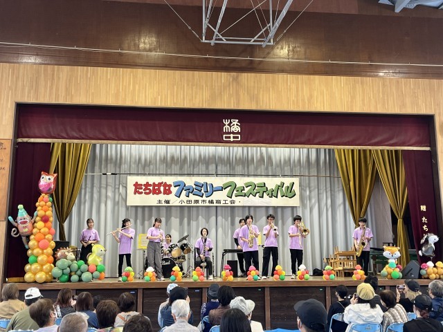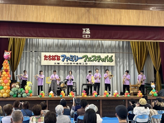 小田原市橘商工会主催の「たちばなファミリーフェスティバル」が本校体育館、グラウンドを主会場に盛大に開催されました。本校からは吹奏楽部が参加。前羽・橘北地区青少年健全育成協議会が中学生ボランティアを募り、数名の生徒がボランティアとして各店舗の手伝いなどを行いました。今年は部活動の大会と日程が重なり中学生ボランティアは例年よりも少なくなってしまいましたが、卒業生がボランティアを担っていて、地域全体で支え合う温かさを感じました。