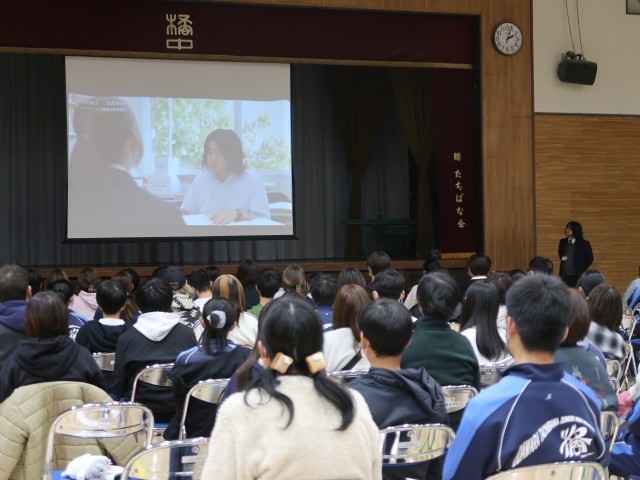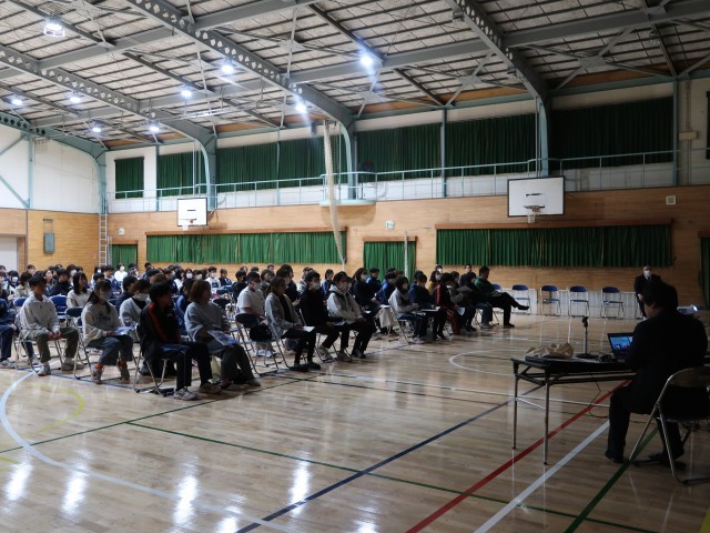 本日の5時間目、2年生の進路説明会が行われました。3つの高校の先生に来校していただき、それぞれの高校の特徴をお話ししていただきました。