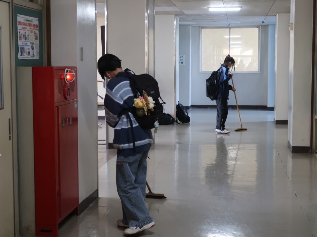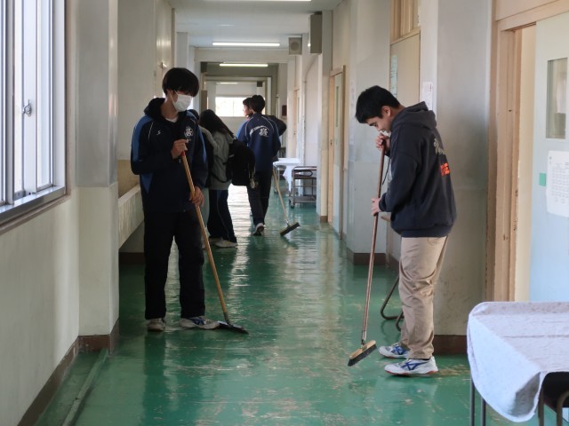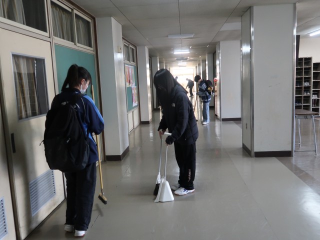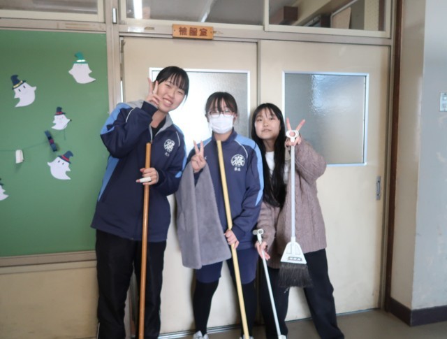 1・2年生のみんな、明日のテストも頑張ってね! そんな気持ちでお掃除をしてくれた3年生でした。