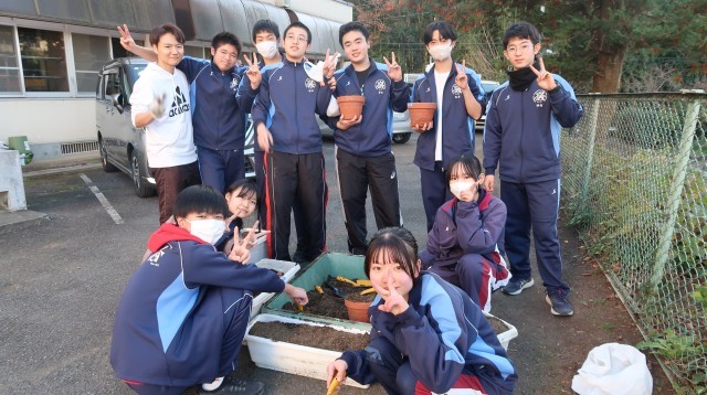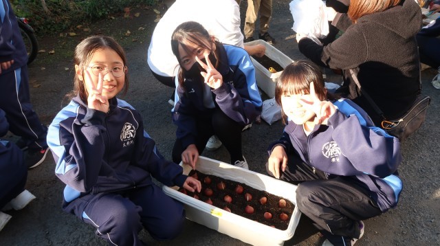 「橘中学校をみんなで協力してたくさんの花が彩る素晴らしい学校にする」ことを目的に生徒会が主催する『たち花project』。今日は放課後の時間を使って、3月の卒業式、4月の入学式での彩を飾るチューリップの球根の植え付けを行いました。各クラスのボランティア生徒と保護者のスクールボランティアの方々で500株の球根をプランターや鉢に植えました。これから春まで各クラスで水やりを行い、愛情たっぷりに育てます。