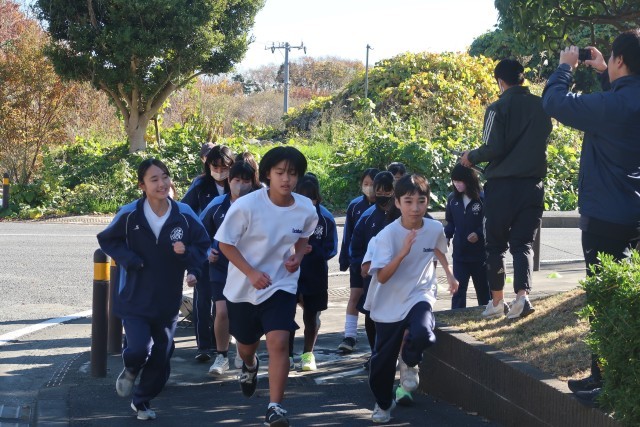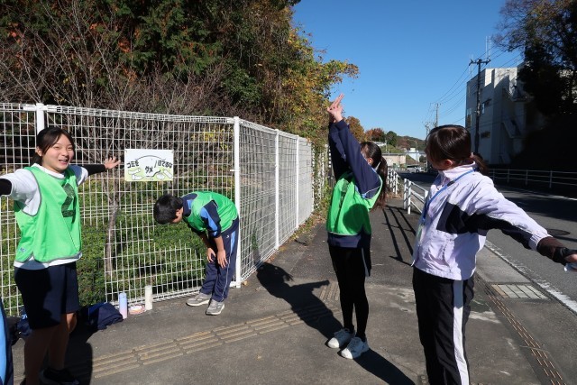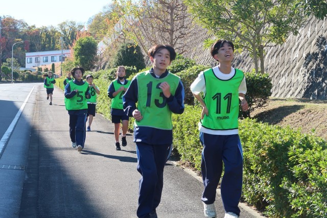 12月4日(木)さわやかな青空の下、3校時は1年生のロードレース大会の試走でした。コースは、最初から長く続く登り坂で、半分すぎると長く続く下り坂の周回コースです。きついコースですが、自分のたてた目標に向かって自分のペースで走りきりました。本番は全学年12月10日(水)です。予備日は12月12日(金)です。ご声援よろしくお願いいたします。