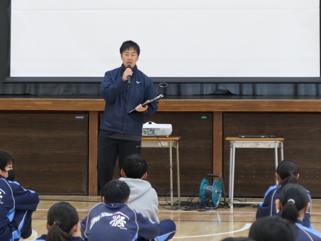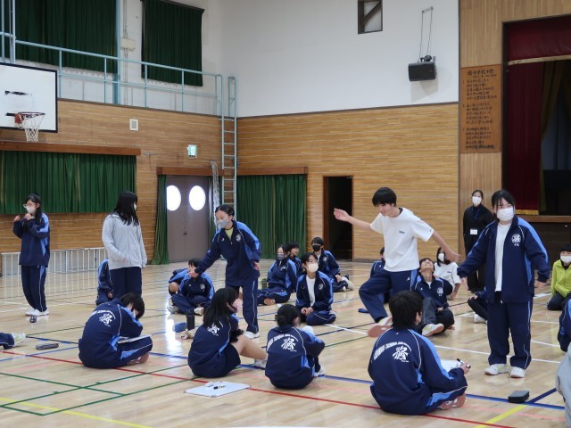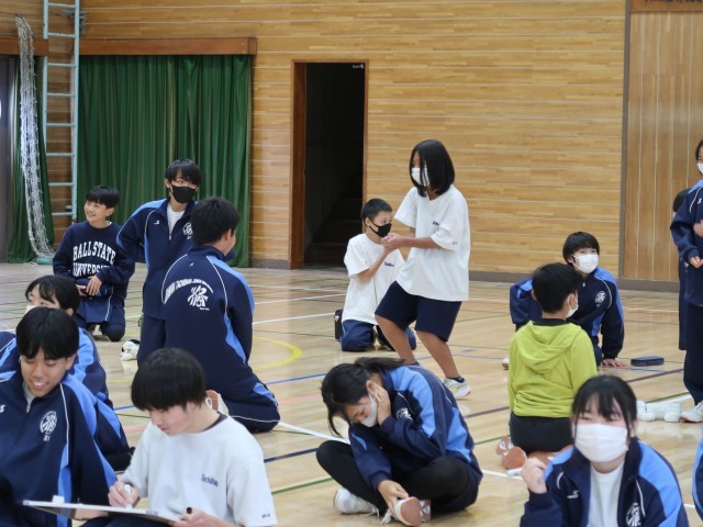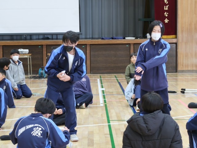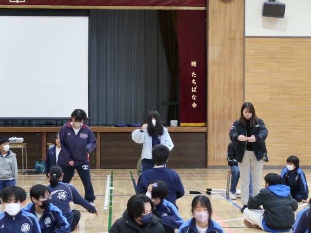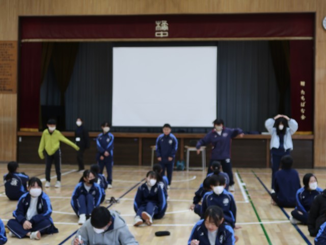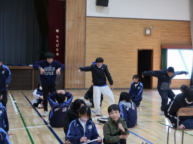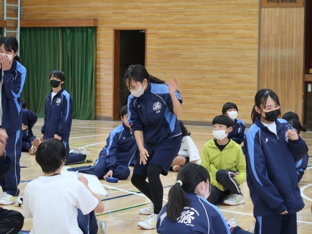 4校時に1年生は学年集会を行いました。生活や学習について振り返った後、学年委員が企画したレクリエーションを楽しみました。いろいろなものを言葉を使わずジェスチャーで伝えるゲームです。「自転車」「たこ」など様々なものになりきり、ジェスチャーで表現しました。珍回答も飛び出し、仲間との仲が深まるとても楽しいひと時でした。