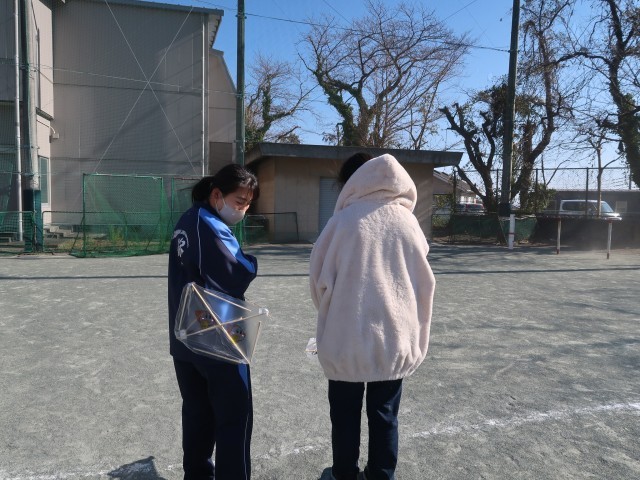 昨日1月13日(火)午前、3組では各々の凧を手作りし、運動場で凧揚げをしました。風があるので高く揚げられるのではと思いきや、強い風が運動場を渦巻き、凧を操るのはかなりの難しさ。低空飛行する凧を何とか上空に揚げようと、とにかく走り回る元気な3組のみんなでした。