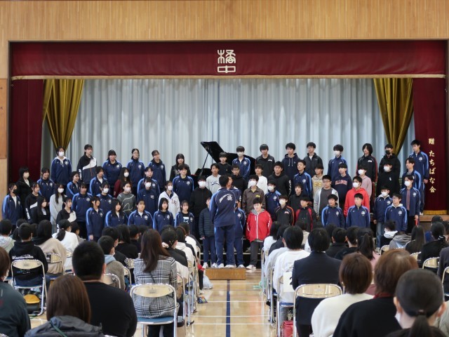 新入生説明会があり、4月に入学予定の6年生約70名と保護者の方々にご来校いただきました。神奈川県警の警察官の方や中学校の先生方の話が続きましたが、6年生の皆さんの話を聞く態度はとても立派でした。2年生全員から歓迎の歌のプレゼントもありました。6年生の皆さんが新1年生として橘中学校に入学してくれる日がとても待ち遠しいです。