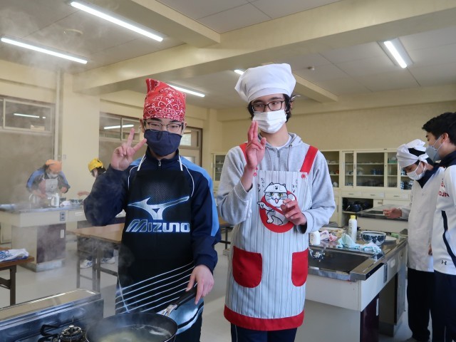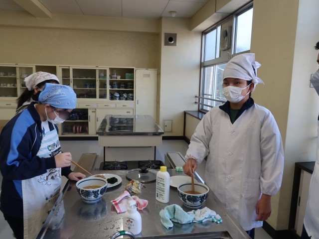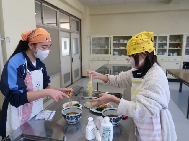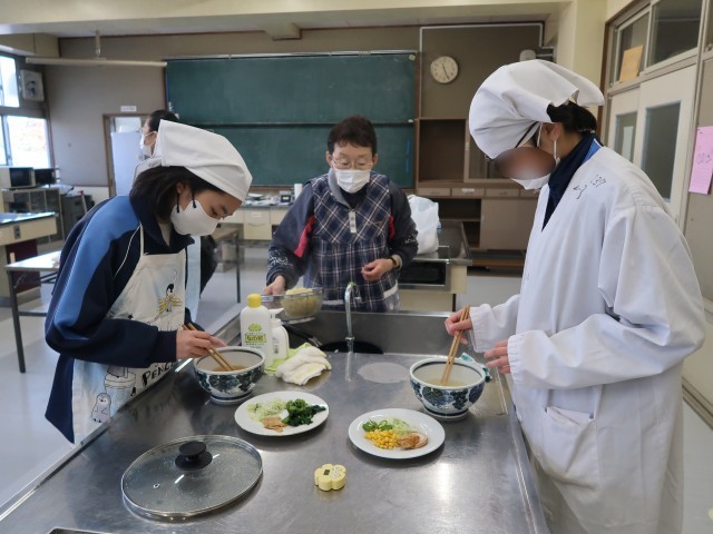 4校時、3組は1・2年生が音楽、3年生が調理実習でラーメンを作りました。手早い作業で麺が伸びないうちに熱々をいただきました。