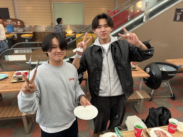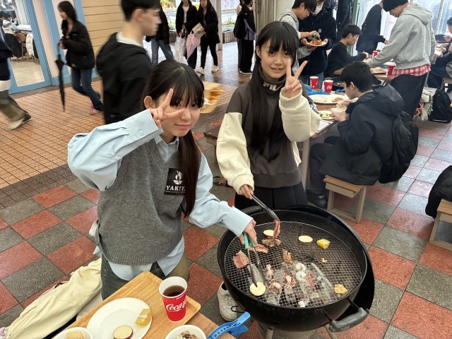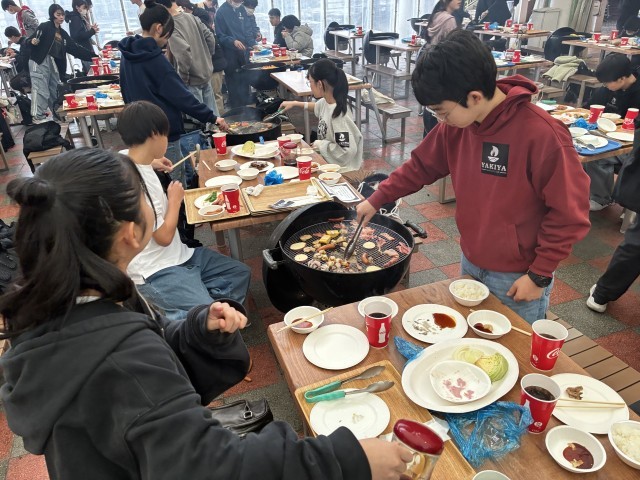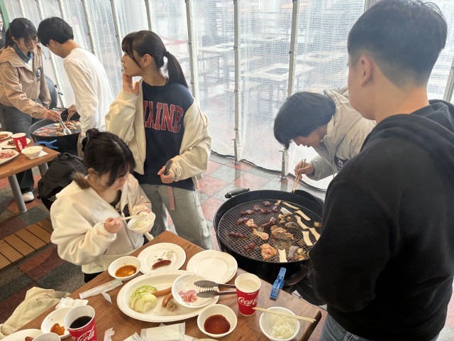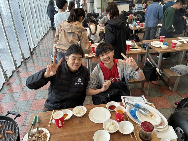 お昼のBBQの様子です。みんなで楽しく食べています。