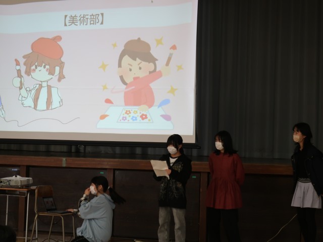 部活動説明会では、各部が趣向を凝らして新1年生に部の様子をアピールしました。部の雰囲気がよく出ていて、楽しい部活説明でした。
