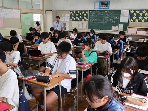 橘中学校区の幼・小・中連携事業の一環で、昨日10月24日(木)の5校時目を中心に、下中幼稚園、下中小学校、前羽小学校の先生方に授業を参観してもらいました。先生方からは、学校の雰囲気や生徒が前向きに授業に取り組む様子、個々の生徒の成長ぶりに感嘆の声が聞かれました。