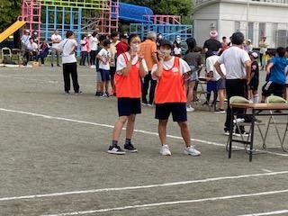 10名近くの生徒が前羽地区の健民祭でボランティアをしていました。競技の準備、放送、得点掲示などを笑顔で活動していました。中には小学生の1キロ走の伴走者として競技の支援をしている生徒がいて、その姿に会場は拍手に包まれていました。