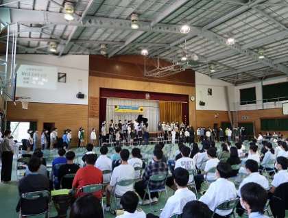本日は学習発表会を開催します。午前中は体育館で英語スピーチ、3年音楽、生徒会本部、3年ダンス、相模人形クラブ、吹奏楽部が発表します。午後は体育館でにじうたコンサートがあり、各学年と各クラスと有志の合唱が披露されます。